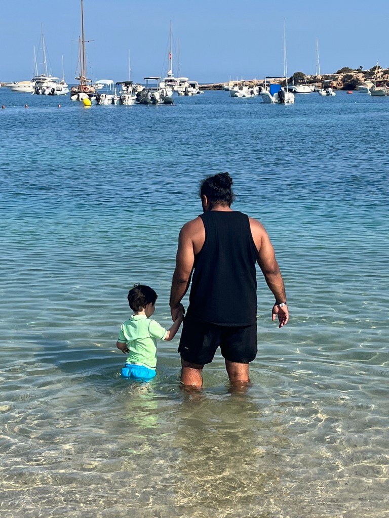 The walk to the beach went exactly as planned, pushchair and all. When we arrived, both kids were thrilled to see the sea. Towels down, Kike took his post in the water and I sat on the sand, keeping an eye on River’s unpredictable movements.