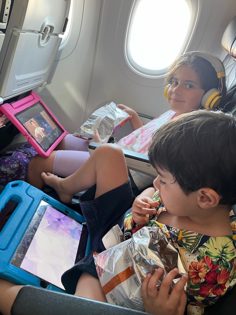 The last 45 minutes were a tense mix of calm and screams. We landed. “Bye bye plane.”