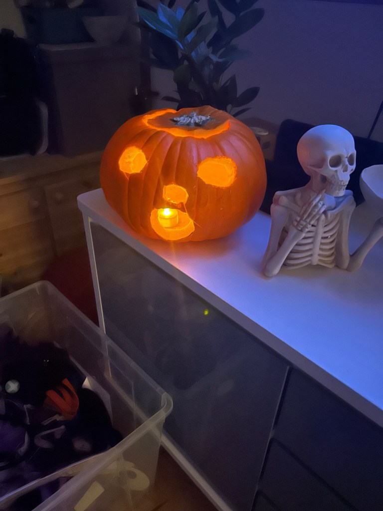 We’ve been having so much fun decorating the house (I’ll post some bits on Instagram). Pumpkin carving went down very well and Kate, ever the professional, made both children plan their designs, talk about them, list the equipment needed and draw them before carving.
