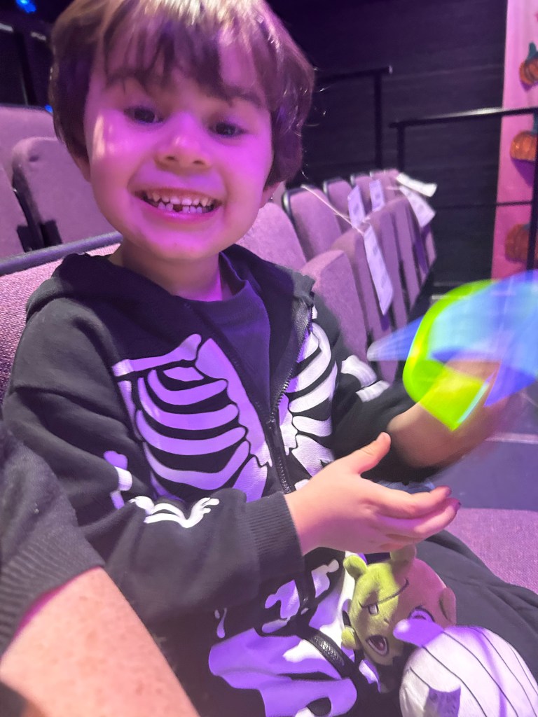 We were all given glow sticks which confused him and wasn’t a fan at first. (even less later when he bit one)