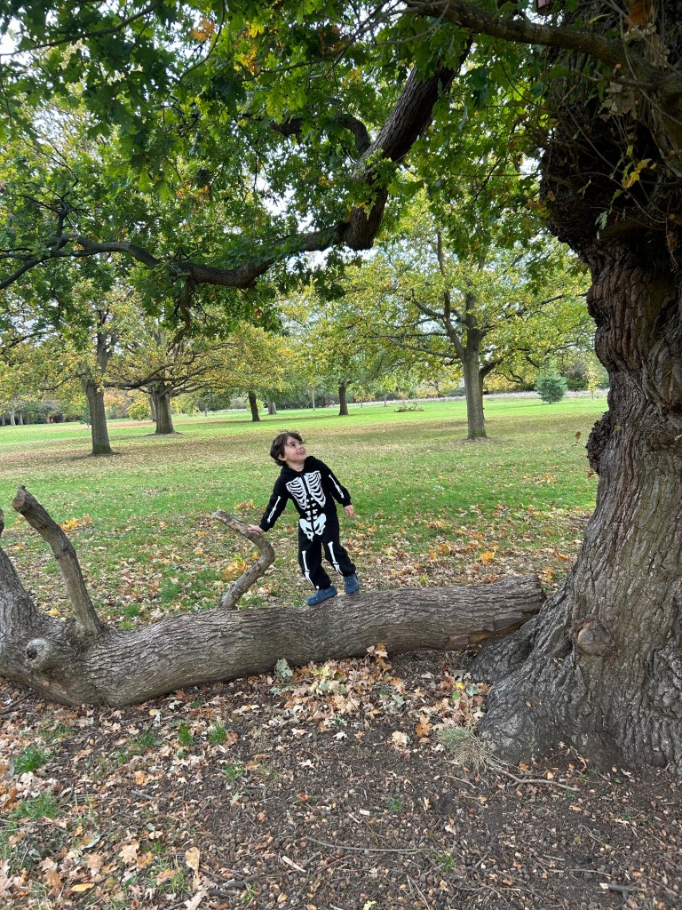We wandered through the park. River chased squirrels, climbed logs, edged too close to the pond for my liking.