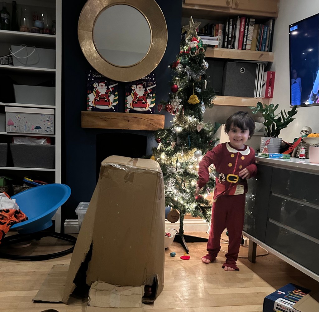 Summer has been playing with him for over an hour using, of course, a giant cardboard box. Kids always want the box.