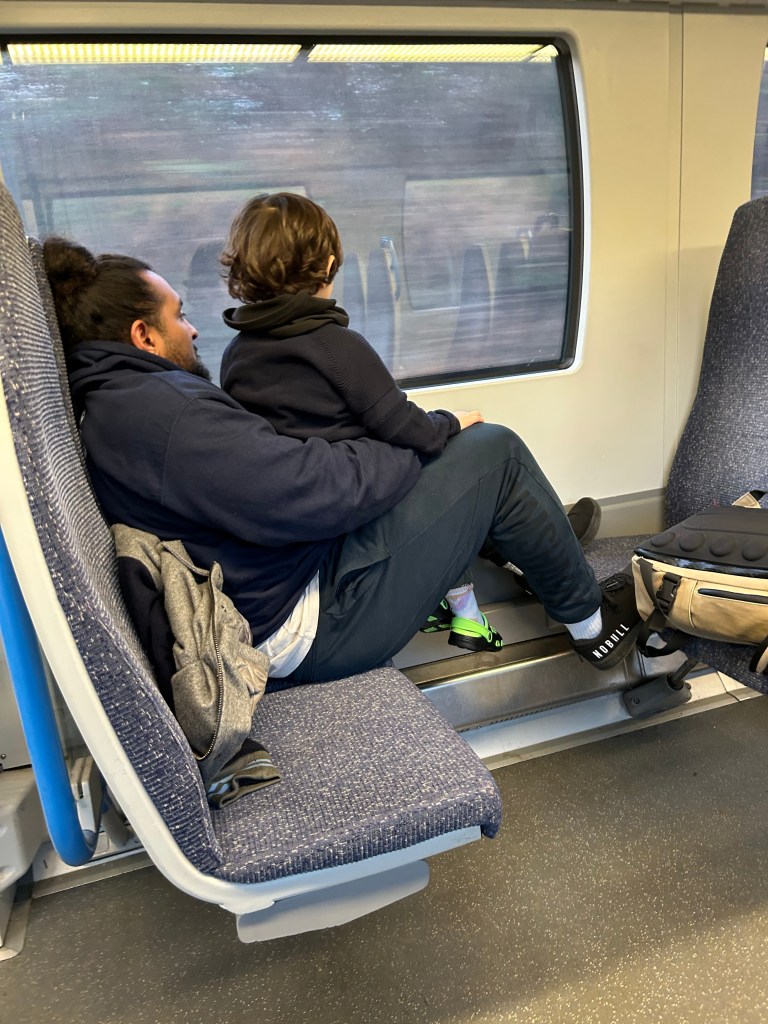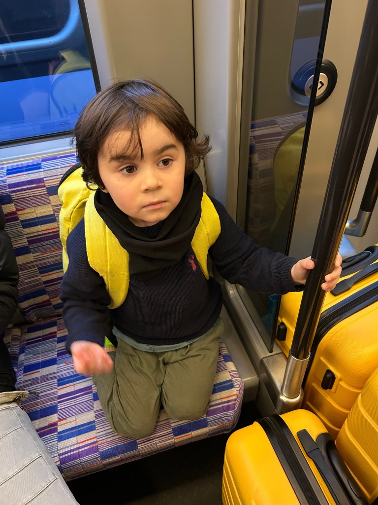 The train was rammed but we did manage to get a seat. River was happy enough making faces at the other passengers. Summer, however, began to look a bit pale.