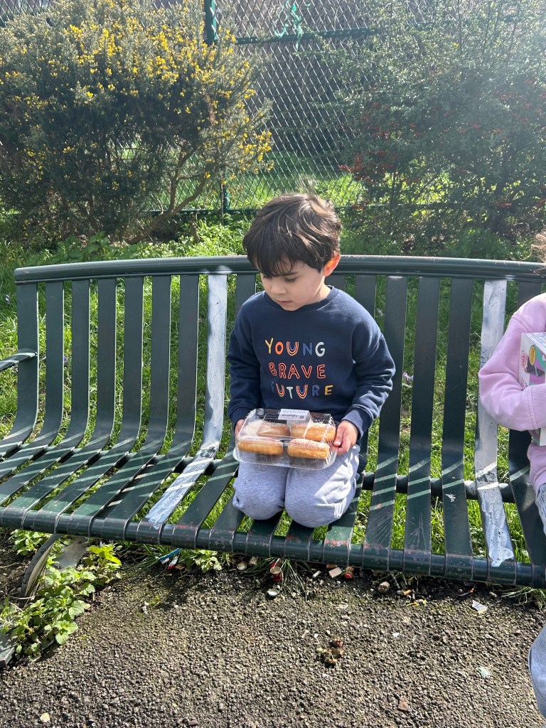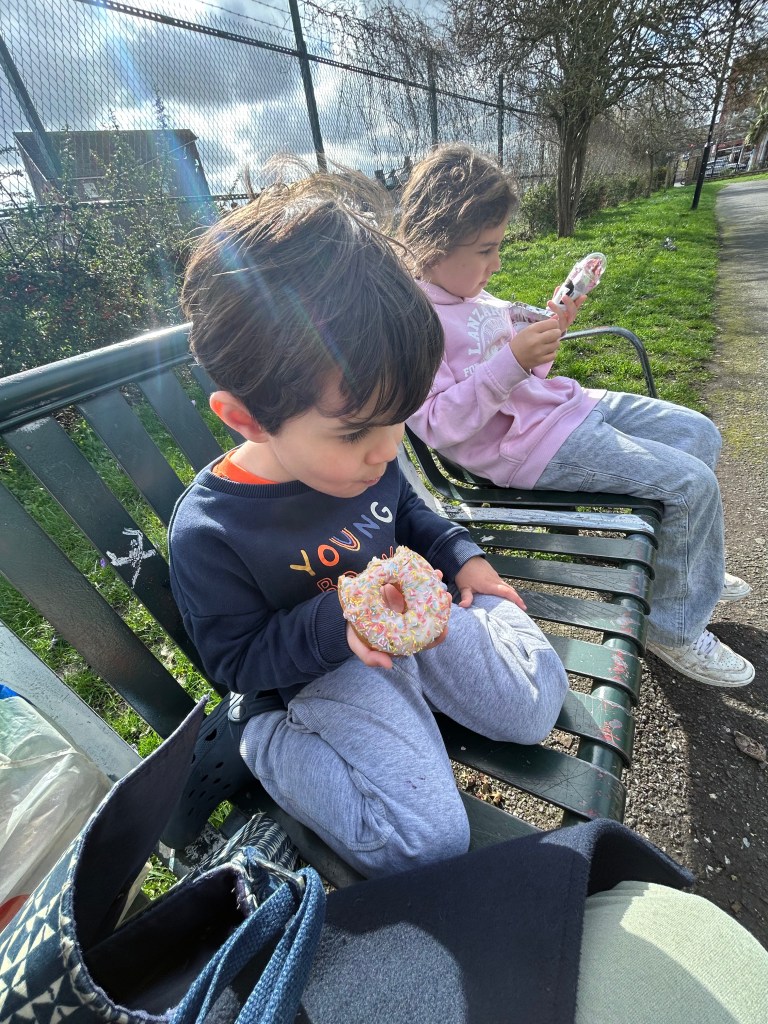 Not perfect. Not wildly thriving. Just steady. Sitting on a park bench in weak London sunshine while my son eats a donut and insists we call 911.